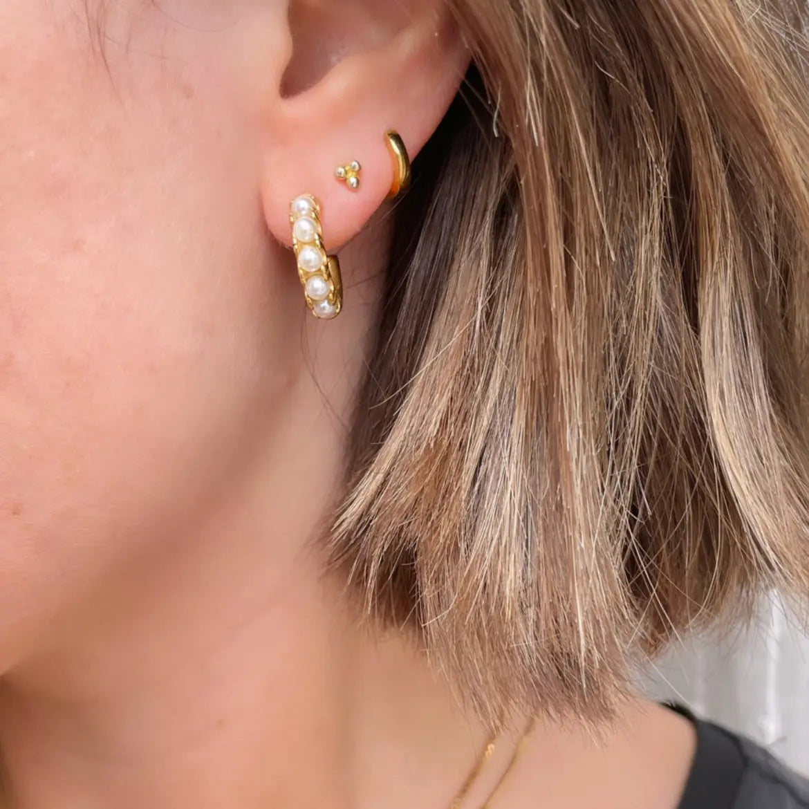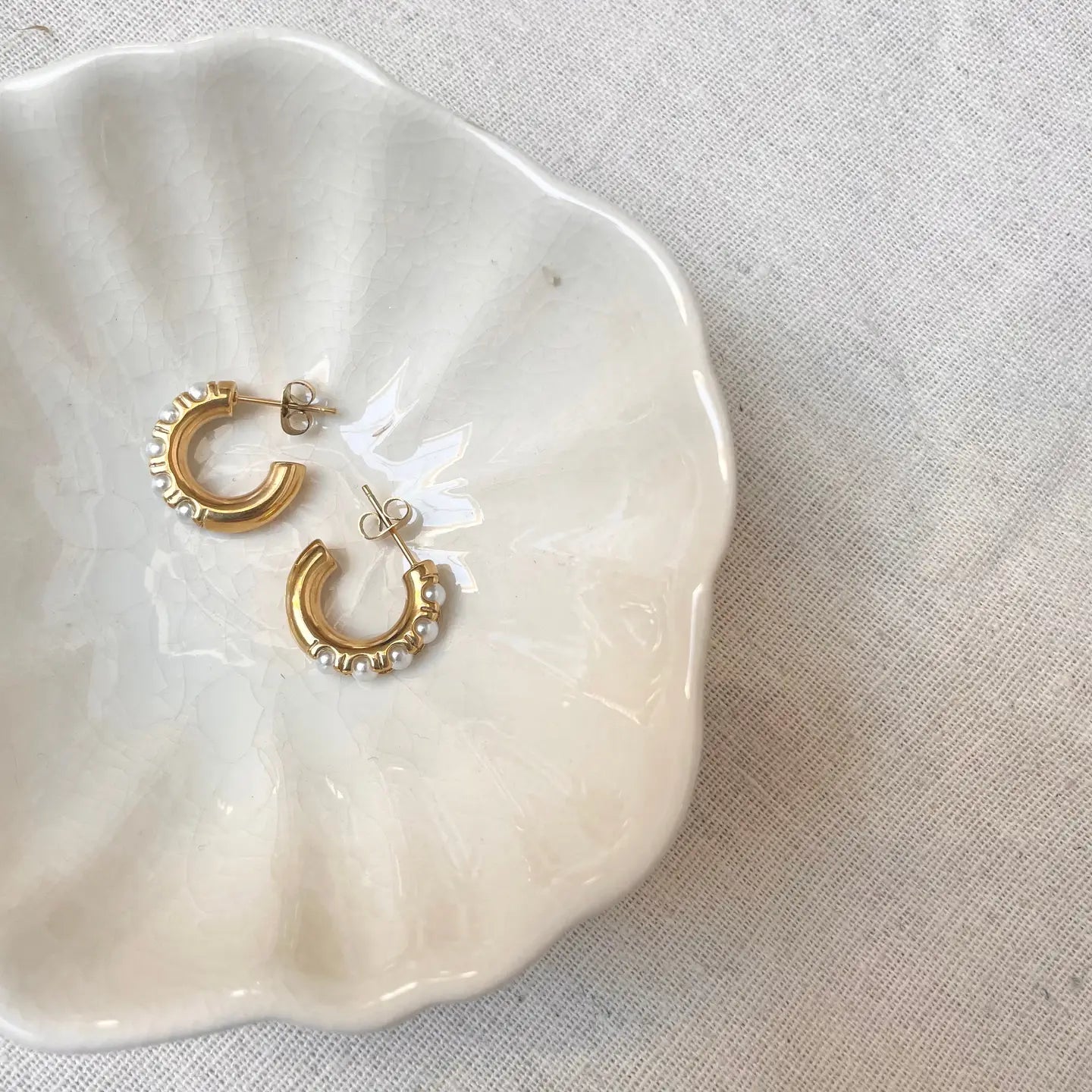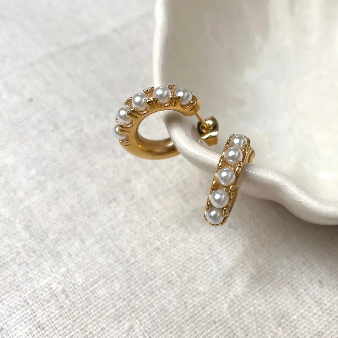 A year round staple for your jewellery box. Timeless gold pearl hoops that will take you from day to evening. 18k gold plated. Light and comfortable enough to wear all day. * Polished gold plated finish, thatwon’t fade or tarnish * Hypoallergenic, hard-wearing steel base for sensitive skin * Timeless design, made to be lovedseason after season * Water resistant, whilst we don’t recommend wearing any jewellery in water, this item will not discolour from contact with liquid.