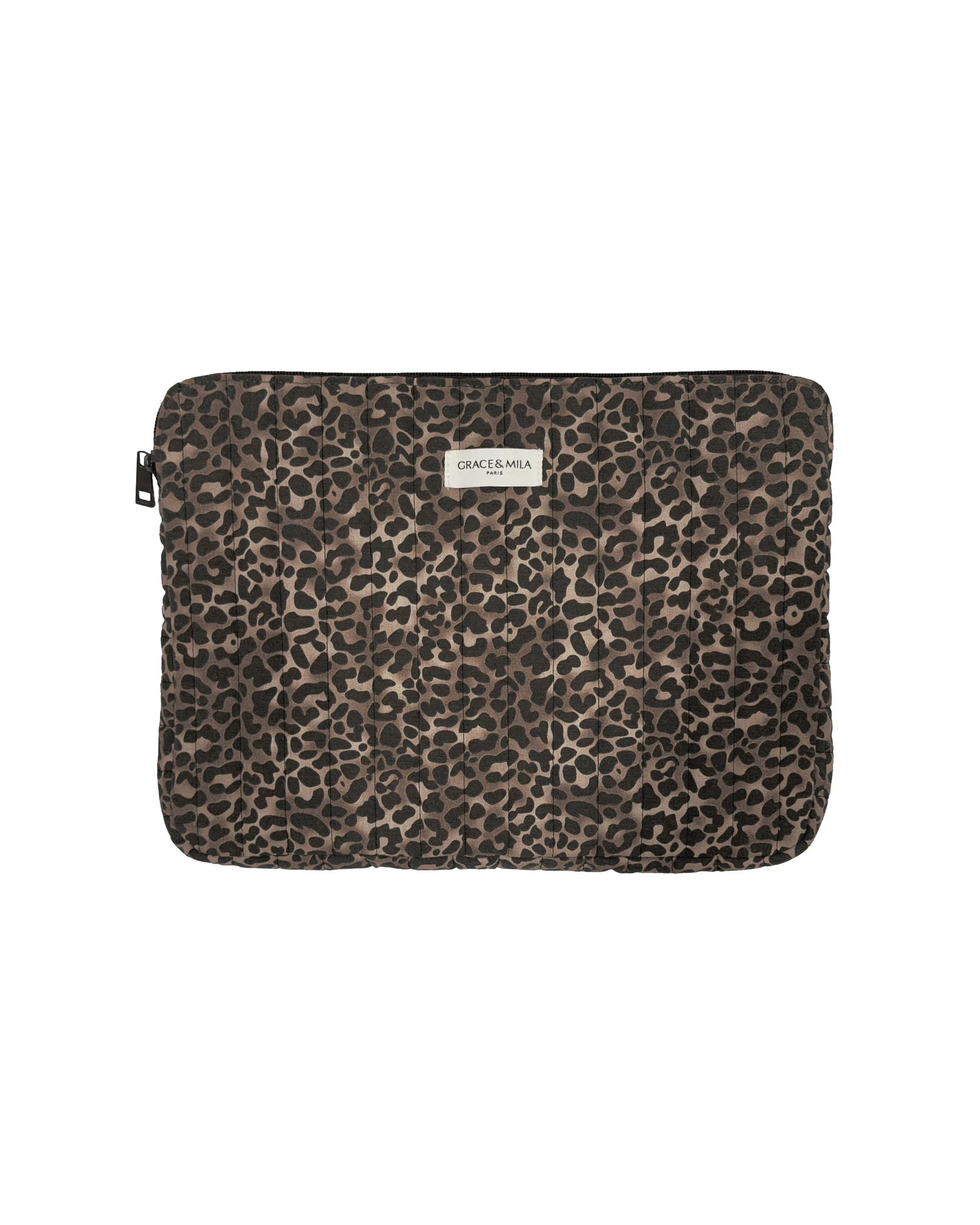The SHERRY quilted laptop sleeve is crafted from thick cotton canvas, combining protection and style. The faded leopard print gives it a bold, vintage look. The piece features a sewn-on "Grace & Mila" label on the front and measures 35 cm x 26 cm. With its practical format and sleek design, the SHERRY leopard print sleeve is a new addition to our accessories collection.