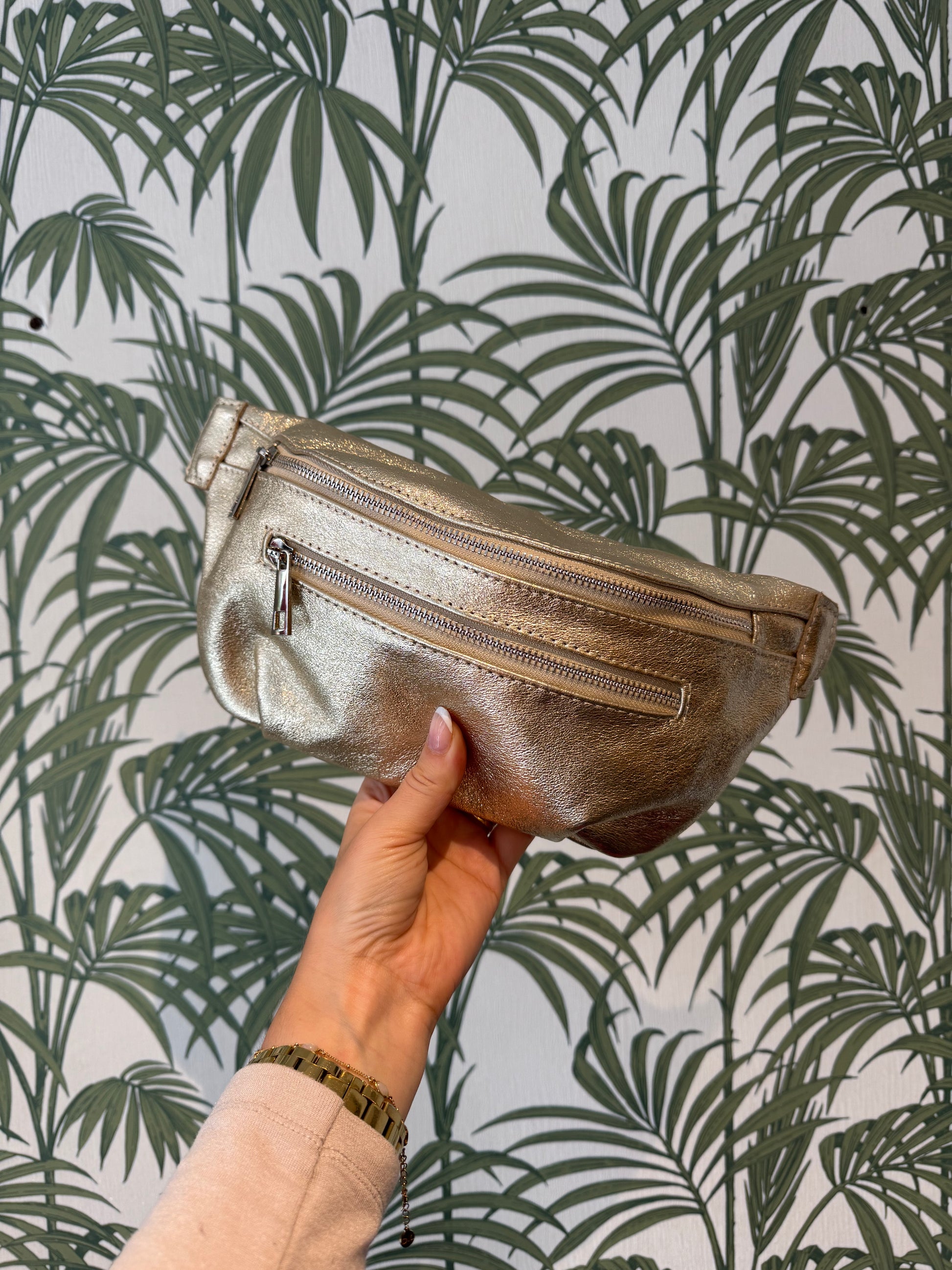 Leather Sling Bag with Purse Gold