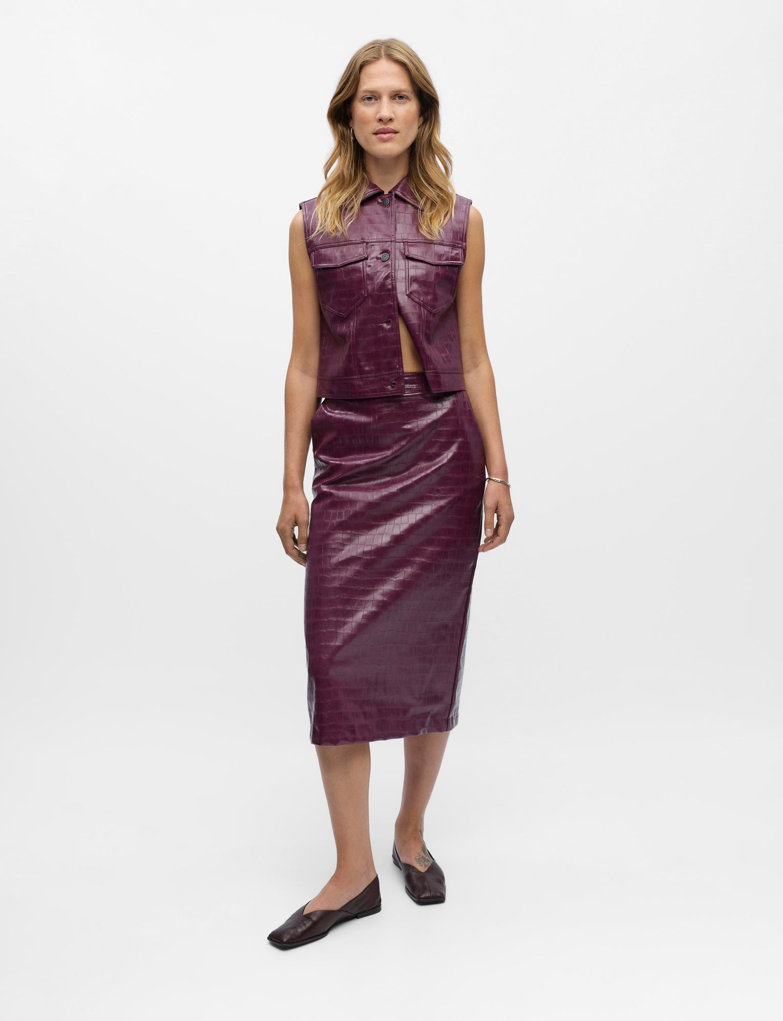 The perfect way to elevate your look, the skirt never fails to make you feel great. Style with knitwear and boots for a cosy everyday appeal or dress it up with heels and jewels for a little extra pizzazz. Polyurethane is a smooth, synthetic fabric - perfect for standing out in a crowd.